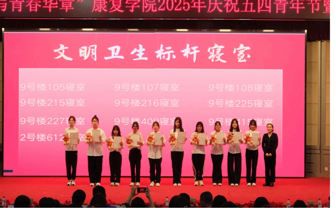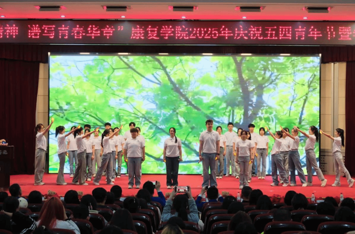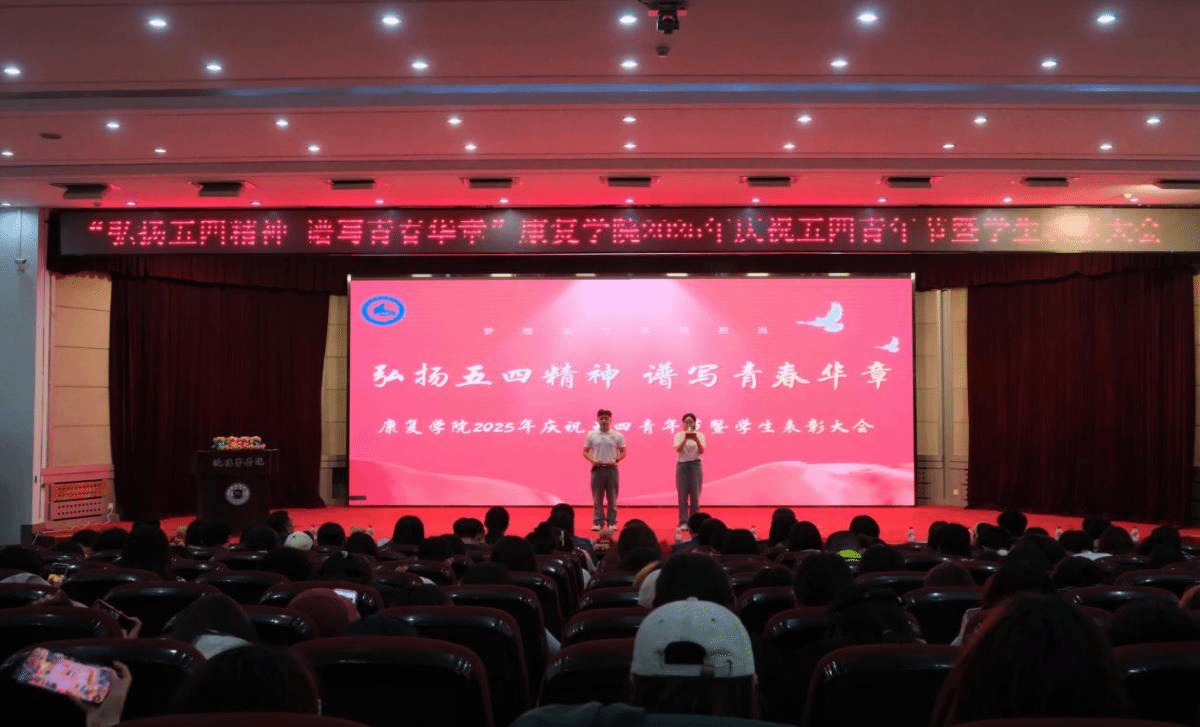 为弘扬五四精神,表彰在2023-2024学年中表现突出的优秀学生,激励康复学子为实现中华民族伟大复兴的中国梦不懈奋斗,v站体育官网于2025年5月9日召开“弘扬五四精神 谱写青春华章”庆祝五四青年节暨学生表彰大会。学校学生工作处、团委等部门领导、中国狮子联会英才服务队领导、v站体育官网全体教师及200余名学生参加本次表彰大会。
