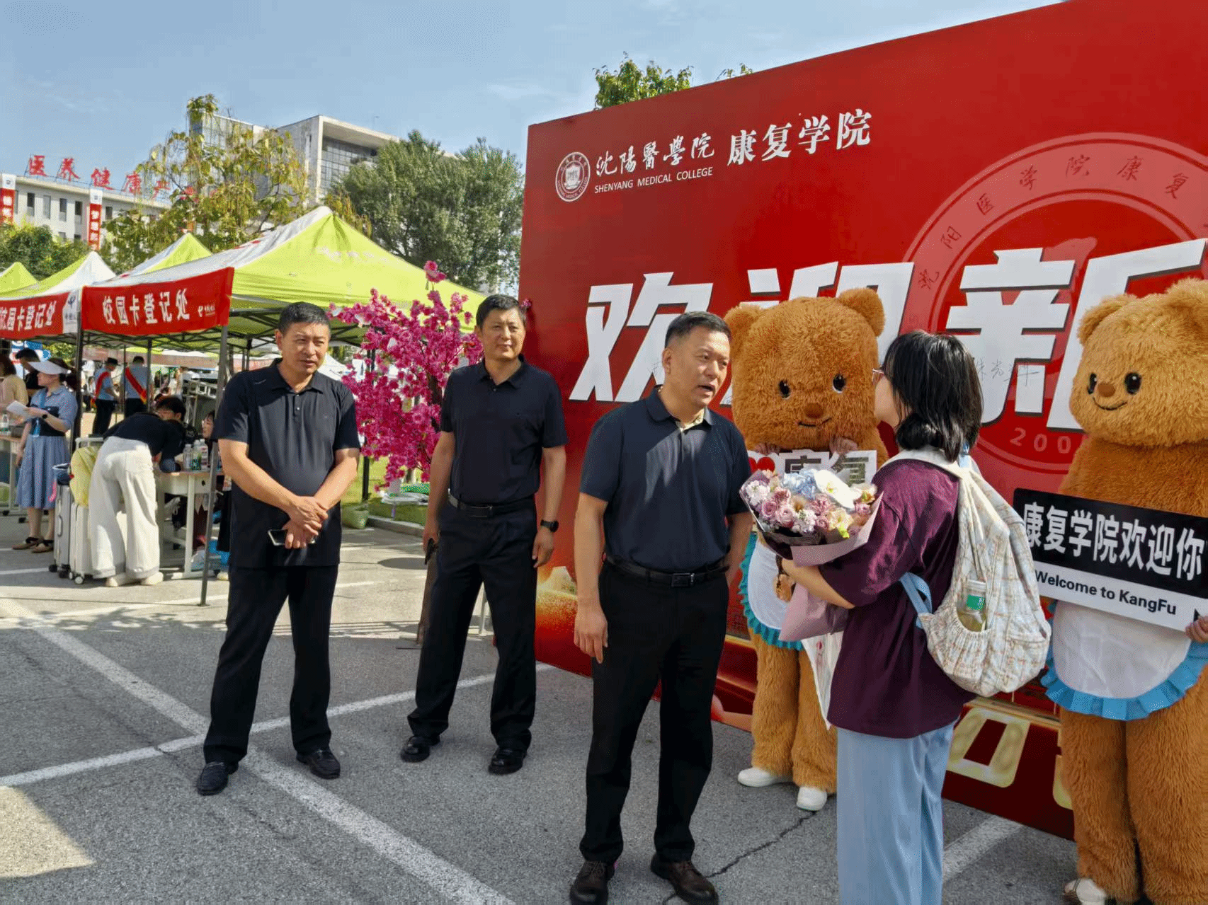 学院精心为报到当天过生日的一名医学影像专业新生准备鲜花与蛋糕,在报到现场为其举办简短而温馨的生日仪式,由学校党委副书记梁浩同志为新生送上祝福,让新生在开学首日收获意外惊喜,深切感受到来自沈医的关怀与温暖。此外,学院对当日以最高成绩录取的新生予以特别鼓励,由学院领导为其送上专属纪念小熊,勉励其在大学阶段继续保持优良学风,精进学业。