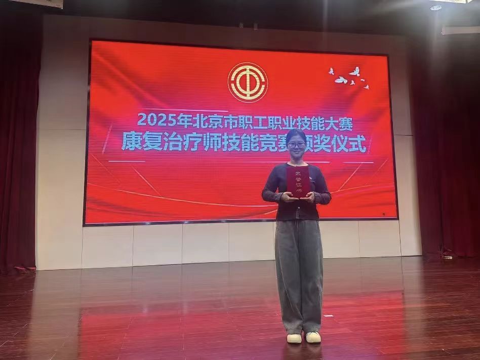 近日,我校16届康复治疗学专业毕业生成琳,在2025年北京市职工职业技能大赛康复治疗师(物理治疗方向)技能竞赛中脱颖而出,被北京市总工会、北京市人力资源与社会保障局授予“北京市优秀治疗师”称号,成为行业从业者中的杰出代表!