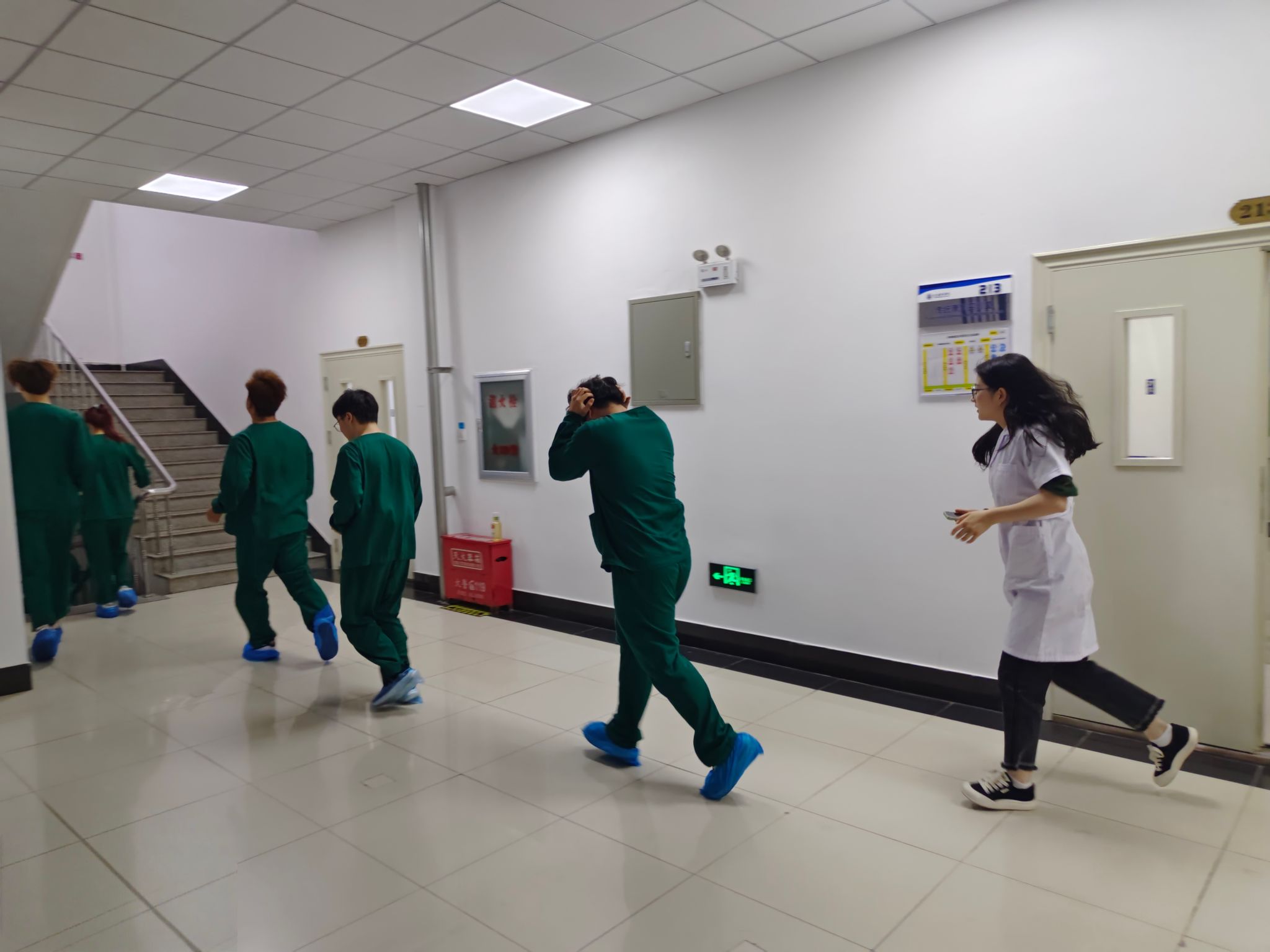 演练开始前,v站体育官网院长高松、书记周东升及副院长杜立英带队全面检查康复楼消防系统,逐一检消火栓、灭火器等设备性能,确保运行正常。