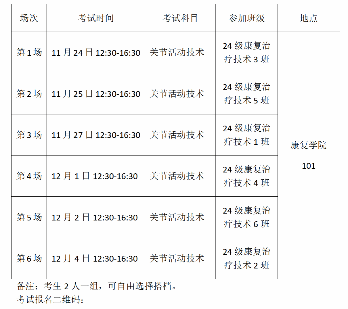 亲爱的同学们,为进一步提升康复专业技能水平,促进康复理论与实践的紧密结合,为今后的职业发展奠定坚实基础,拟进行科目单元通关考核,考核通过后方可进行期末结业考试,科目单元考核成绩将按照10%比例计入期末综合成绩。