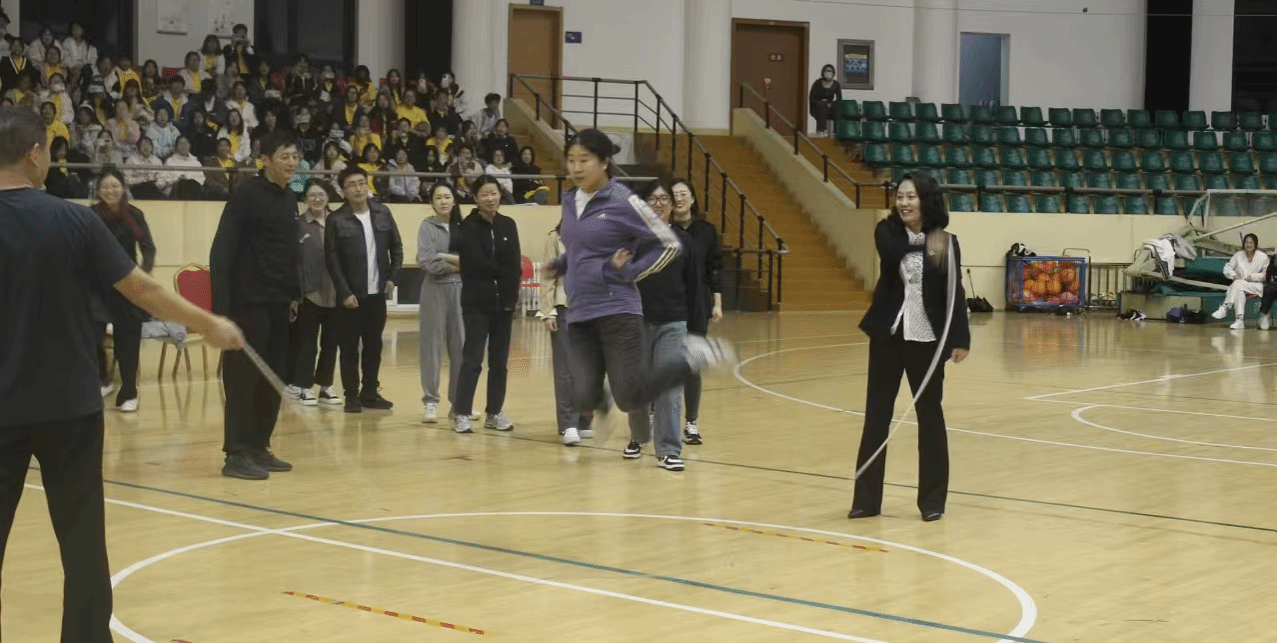 v站体育官网举办2024级新生“跃动青春 绳采飞扬”跳大绳比赛活动